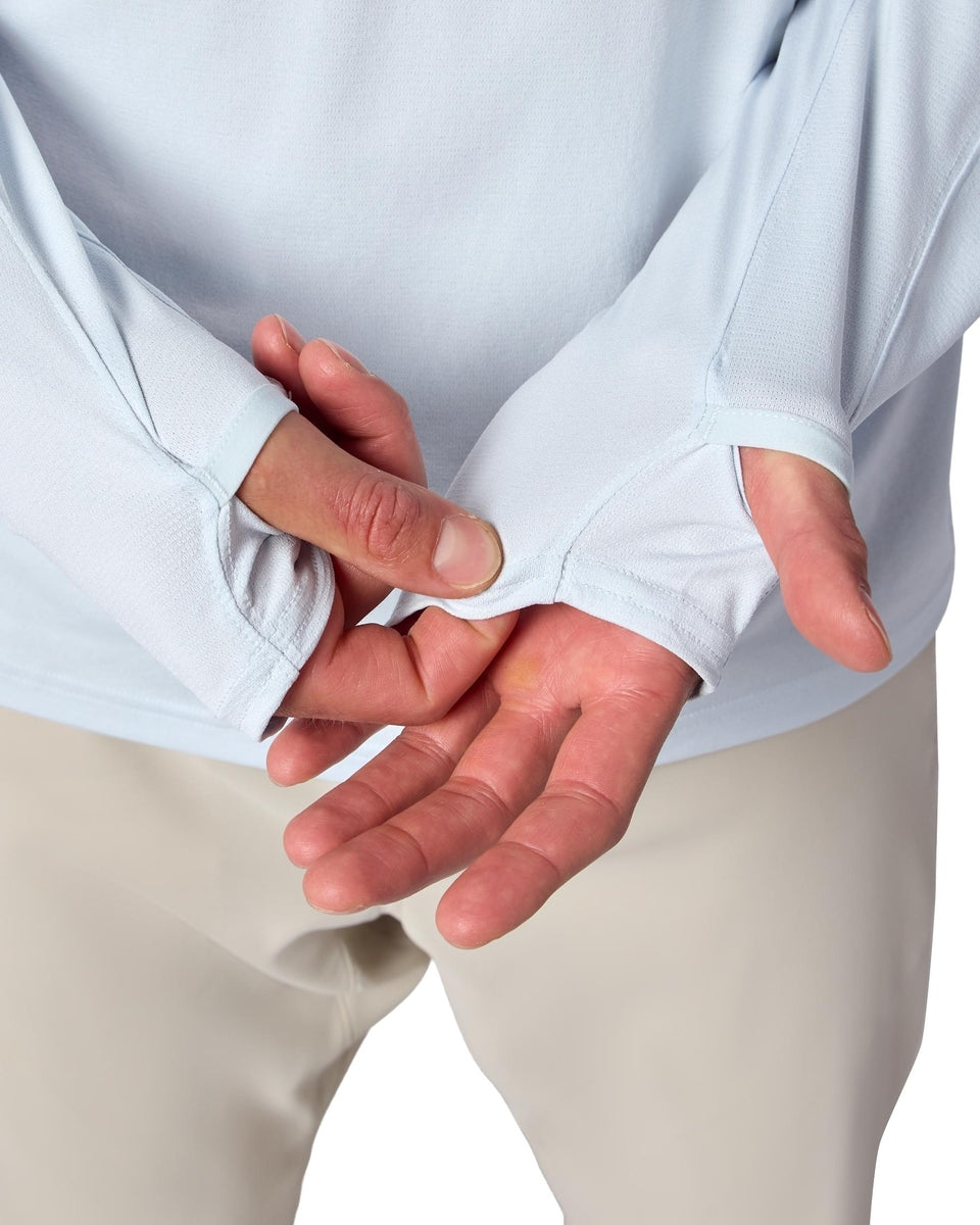 SIMM's SolarFlex Hoody provides amazing UPF 50+ sun protection whether fishing off a boat or at the river's edge. Fabric has been updated to a more natural hand and offers an opaque appearance. Designed for peak performance on scorching days, essential back-of-hand sun protection, and a hood closure that delivers full coverage on sunny days.