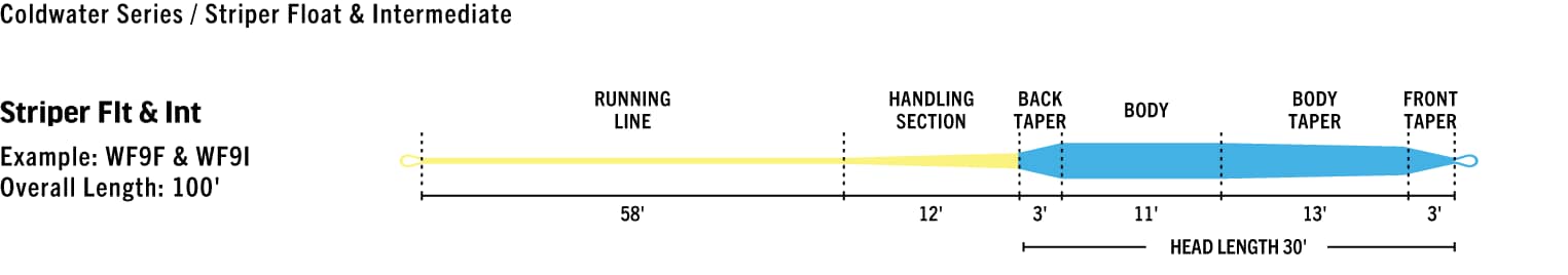 RIO’s Striper fly lines are designed for the modern striper angler, and feature quick-loading, easy casting heads. There are three fly line types within this series: 1) a full floating line, 2) a clear intermediate sinking line with luminous running line, and 3) a series of 30 ft long sinking head fly lines with intermediate running lines. Each sinking fly line is density compensated and allows anglers to stay in touch with the fly. Welded loops on both ends of all lines make for fast rigging. In addition the line is built with SlickCast—the slickest, most durable coating on the market.